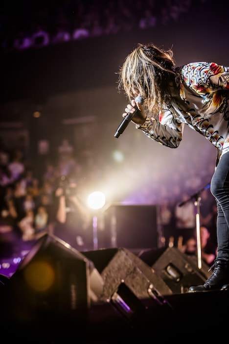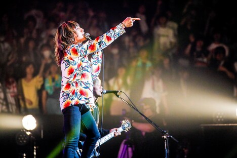 「らしさ」ではステージ左右に伸びる花道に足を運び、スタンド席のファンの顔を見ながら語りかけるように歌った渋谷。ステージ中央に戻ると「あいつ、歌しかできないんだって思われてそうでちょっと不安です……俺も楽器ができるってところを見せてもいいでしょうか?」と堂々とタンバリンを構えてファンを和ませる。そんなタンバリンの音色が彩った「赤を塗って」では4人のグルーヴィな演奏と渋谷の柔らかな歌声がフロアを揺らした。なおこの日はチケットソールドアウトにより、ステージの全体や一部演出が見えにくい、または見えない可能性がある“注釈付指定席”も満席。会場に来られないファンに向けたGYAO!ストアでの生中継も用意され、渋谷が“注釈付指定席”やカメラの向こうのファンにも「元気? ご飯食べた?」と気遣うシーンも見られた。
