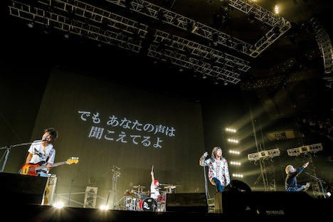 「俺たちがメジャーにいたときに『これなんじゃないか』って胸を張ってやっていた曲。今日も胸を張ってあなたの前でやってもいいでしょうか」という渋谷の言葉から届けられたのは、メジャーレーベル時代のナンバー「シアワセ」のストリングスバージョン。曲中にストリングスが加わるとつぶやくように歌い始めた渋谷の声にも熱が増し、オーディエンスは息を呑むようにステージを見つめていた。ストリングスセクションを見送ったのち、渋谷は「日本武道館、まだまだそんなもんじゃないですよね!?」と再度オーディエンスを煽り、4人は「青い春」で会場に爽快なサウンドを響かせる。ミラーボールに反射した光が客席を照らした「東京流星群」、メンバーそれぞれの堂々としたソロパートが印象的な「秘密」ではオーディエンスのシンガロングがいっそう大きくなり、渋谷は「これぞまさしく、あなたがいてくれる武道館です!」と誇らしそうに声を上げた。