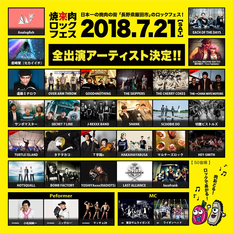 - 焼來肉ロックフェス2018 in 南信州・飯田 OFFICIAL WEB | 2018.7.21(SAT) 開催決定! at 野底山森林公園。ロックであがる!肉おどる!