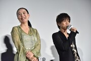山に迷い込み、永瀬扮する智と共同生活をしながら山守として生きる鈴を演じた岩田。MCから今作に出演したことで、役者として何か変化があったか聞かれると特殊伐採の技術を得たことだと語る。ロープ1本を頼りに木を登り、その先にある木を切り落とすシーンは、スタントではなく自身でやりたいと岩田から申し出て行ったという。ロープを登る動きをしながら「練習をして、1日2日で馴染んできて、意外と向いてるのかなと思いました。転職するなら山守になりたいという新しい発見がありましたね」と岩田が話すと、河瀬は「言いましたよ、今。失業したらよろしくお願いします」とコメント。すると岩田は笑顔で「はい」と答えた。