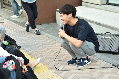 3番手で観客の前に立ったのは福岡県出身の大塚太一。「初の路上ライブだし、それが地元ではなく東京ということでとても緊張しています」と照れ笑いを浮かべると、彼はゆず「またあえる日まで」を歌った。「テンポのいい曲なので」と聴衆に手拍子を求め、自身もリズムに乗りながらのパフォーマンスで個性をアピールする。石井翔也は「緊張しいなので温かく聴いていただけたら」と呼びかけ、指田郁也「花になれ」を歌唱。歌声に緊張をにじませながらも、懸命に思いを届け「僕以外の人たちはみんな僕にないものを持っていて『いいな』と思うけど、逆に僕にしかないものもあるのかなと思います。自分ではそれが何かまだわからないけど、皆さんが感じ取ってくれていたらいいなと思います」とコメントした。