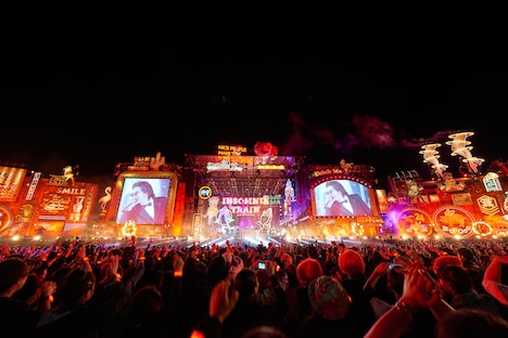 会場の入口ゲートでは今回のライブの舞台となる列車「INSOMNIA TRAIN」の“座長”が観客を出迎えて挨拶し期待を煽る。会場前方には「INSOMNIA TRAIN」を表現する高さ30m、幅80mの巨大なステージが広がり、入場したファンを驚かせた。