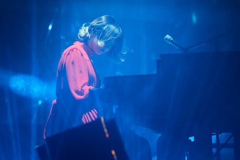 最終日の開演時刻を迎え、機関車の上部から蒸気が吹き上がる中で「INSOMNIA TRAIN」のキャストであるメンバーがステージへ現れた。1曲目の「インスタントラジオ」ではオリジナルと異なるハネたリズムのアレンジが繰り広げられ、オーディエンスを喜ばせた。続く「マーメイドラプソディー」ではAメロのボーカルをNakajin(G)が取り、楽曲に新たな彩りを加える。重厚なイントロで幕を開けたのは「Love the warz -rearranged-」。Fukase(Vo)が鬼気迫る表情で歌う声と、Saori(Piano)が奏でるエモーショナルなピアノの音色が会場に力強く響いた。