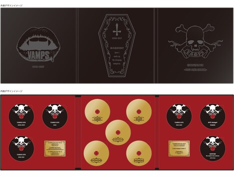 結成10周年を記念して制作されるこのボックスセットは、VAMPSがインディーズ時代にリリースしたアルバムおよび映像作品に加え、ユニバーサル ミュージックから発表した全タイトルをまとめたボリューム感のある内容。レザー調の存在感あるパッケージの中にアルバム全5タイトルを“GOLD DISC”化したものが同梱されるなど、ファン必携のアイテムとなる。今作はUNIVERSAL MUSIC STOREのみで販売される数量限定アイテムとなり、8月3日から9月2日まで予約を受け付ける。価格は3万2400円。