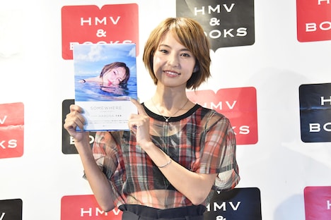 イベントではファンに向けたサイン入り写真集のお渡し会の前に囲み取材が行われ、HARUNAは「少しホッとしています。自分1人で何かを発売したり、曲以外でリリースさせていただくことが初めてなので、どれくらいの人が買ってくれるんだろうと想像がついてなかったんですけど、予約の段階で増刷が決定したり、ファンの人が買ってくれているのを見てうれしかったです」と「SOMEWHERE」を発売した心境をコメント。さらに「10種類の衣装を2日間で撮りきったので弾丸スケジュールだったんですけど、すごく楽しくて」「写真集の最後のほうにある夕陽をバックに撮った写真では、夕陽の色がどんどん変化してドラマチックな景色になっていったのがものすごく印象的で。あの撮影は忘れられないです」とフィリピン・セブ島で行われたロケを振り返ったほか、夜のプールで撮影された写真をお気に入りのカットに挙げ、「照明もない中、夜のプールでどんな写真が撮れるのか未知だったんですけど、出来上がりを見たらすごく鮮やかで。水の中まで写っていて、神秘的でアートな写真を撮れて大満足です」と語った。