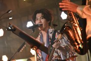 泉大智(Dr)、矢部昌暉(G, Cho)、橘柊生(DJ, Rap, Key, Flying dish)と3人のホーン隊がそれぞれのポジションに就くと、最後にステージに姿を見せた北村匠海(Vo, G)は「こんばんはDISH//です。野音へようこそ!」とオーディエンスを歓迎した。1曲目の「I'm FISH//」はブラスサウンドが加わったアレンジで、バンドは華々しくライブの幕開けを告げる。初っ端から観客を踊らせた彼らは勢いのまま「俺たちルーキーズ」へとつなげ、昌暉の「ここでひと言」という声に匠海は「DISH//が野音にやって来たぞー!!」と思い切り叫んでみせた。