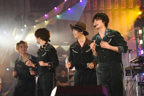 グループのバンドとしての進化を感じさせた前半を終えると、ライブはソロコーナーへ。ここでは4人の新しいソロ曲が披露され、大智はドラムボーカルを、昌暉は過去のキュートなソロ曲からガラリと趣を変えたクールなダンスチューンで新境地を見せるなど、それぞれにスラッシャーの驚きと歓声を誘った。そして、そろいのつなぎ姿で再登場したメンバーは「サイショの恋~モテたくて~」「ピーターパンシンドローム」とレアな初期曲を届けてスラッシャーを喜ばせる。「ピーターパンシンドローム」は客席の中に作られた特設ステージで披露され、昌暉の歌唱パートではおなじみの「昌暉!」コールがにぎやかに楽曲を彩っていた。