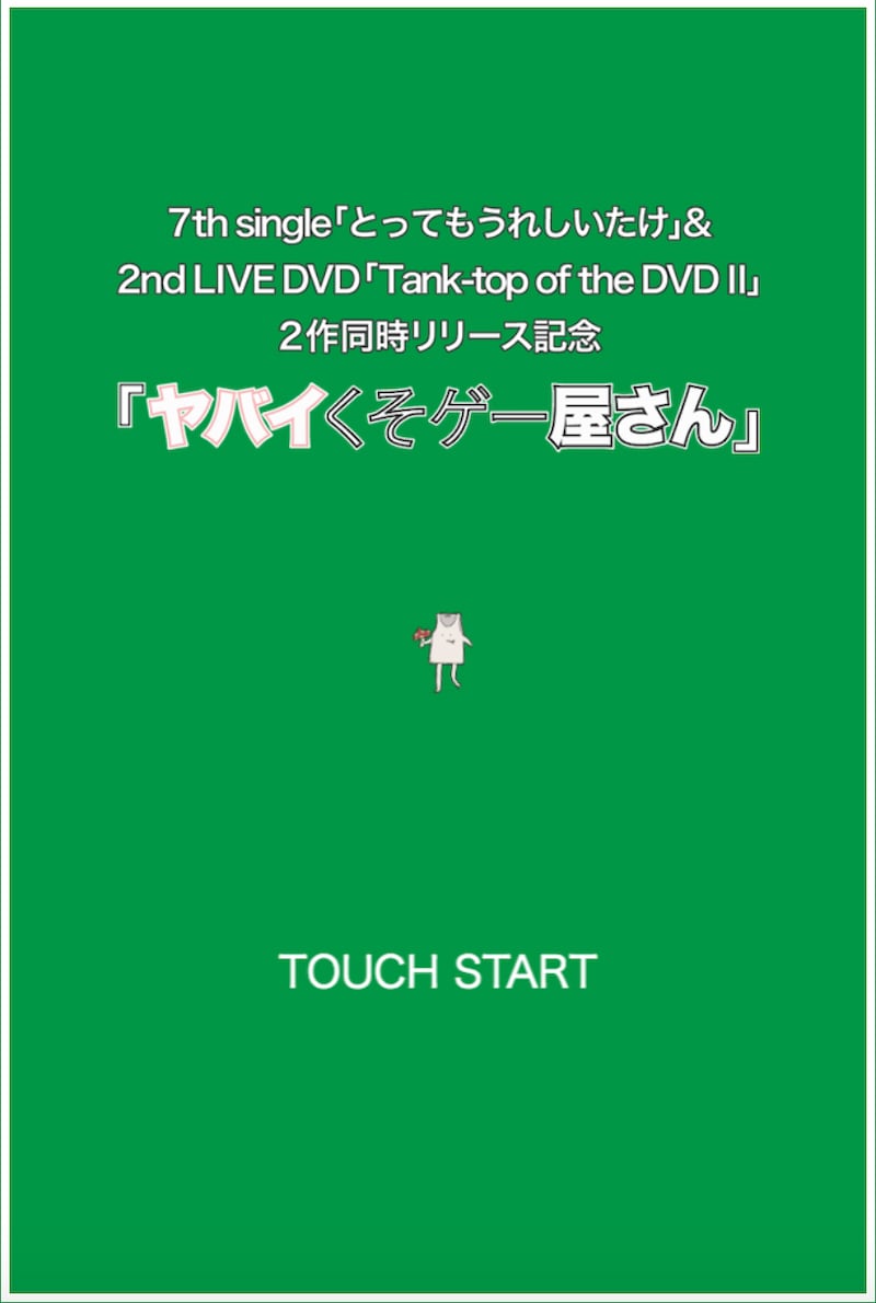 メジャーデビュー以降、シングルがリリースされるたびにさまざまな「ジェネレーター」を公開してきたヤバT。今回は「ジェネレーター」ではなく「ヤバイくそゲー屋さん」と題したサイトを公開し、ヤバTのキャラクター・タンクトップくんを崩していくゲーム「タンクトップくん崩し」を発表した。このゲームは無料で遊ぶことができるが、“ヤバT ID”の会員登録が必要となる。
