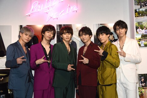 司会者に会場を観た感想を問われたユースケは「ビックリだよね。僕ら6、7年超特急をやらせてもらっているんですが、なんだかあらためて『芸能やってるんだな、自分』って思いました」と目を丸くしながら語る。リョウガは彼の言葉に「そんなこと思ってたの(笑)」と笑いつつも「こんなにクールでおしゃれにしてくださって、今までいろんな展示を観てきた8号車(超特急ファン)も楽しめるんじゃないかな」と続いた。