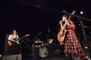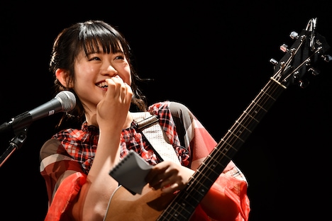 ライブのオープニングを飾ったのは、原田のソロデビュー曲として11月3日に配信でリリースされた「Fifteen」。これは彼女が16歳の誕生日を迎えた今年6月、これから先の“前に進む決意”を込めて書いた楽曲だ。8月のステージデビュー以降、原田は制服をモチーフにした衣装でライブを行ってきたが、この日は赤いチェックのワンピースで登場。アコースティックギターを弾きながらバンド演奏に乗せて「Fifteen」を歌い上げた。観客の温かい拍手に原田は緊張していた表情をほぐし「とにかく明るく楽しく元気よくがんばりますので、皆さんも日頃のネガティブをポジティブに変えていきましょう」と呼びかけると、「今日はたくさん新曲を持ってきました」と、さっそく「Fifteen」のアンサーソングとして作ったという新曲「生まれてきてから」へ。観客はカントリー調のビートに合わせてハンドクラップを鳴らし、原田はリズムに身を委ねて軽快に歌う。同じくカントリー調の「永遠の交差点」では井上のバンジョーと望月のバイオリンがカラフルな彩りを加えた。