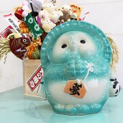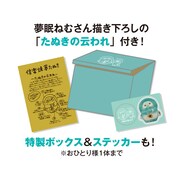 ナタリーストアが手がける「信楽焼 夢たぬき」は、夢眠の担当カラーであるミントグリーンに彩られたたぬきの置物。職人によって1つひとつ手作業で作られ、たぬきの持つ絵馬には「夢」の文字が書かれている。価格は末広がりで縁起のいい8000円。夢眠書き下ろしの「たぬきの云われ」およびオリジナルステッカーと共に特製ボックスに収められる。