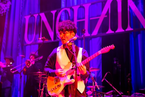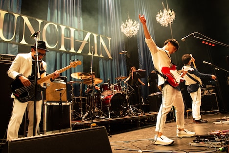 吉田昇吾(Dr)による体の芯に響くドラムプレイから、ロックチューン「Super Collider」のイントロが鳴り響くと、会場からはこの日一番の歓声が。ライブが中盤を迎えた頃、谷川が「ここからはUNCHAINの4人だけでライブをしていきます。まさに"4 to 1000"!」と告げ、4人編成でのライブがスタートした。「make it glow」の演奏後に谷川は、「武道館が1万人だとすると、UNCHAINは22年で1000人なので、武道館をするのにあと200年くらいかかってしまうんですが」と言って会場を笑わせつつ、「ここにいる1000人は、1万人にも負けない絆を持っています。今日ここにいられるのも皆さんのおかげです。あの日、あのとき、あのタイミングでUNCHAINに出会ってくれてありがとうございます」とこの日を迎えられた感謝の気持ちを伝えた。