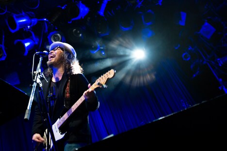 定刻を少し過ぎた頃、黒いジャケット姿でステージに登場したサニーデイは「あの花と太陽と」でゆったりとライブをスタートさせる。「結成当時、毎回ライブでやってた曲だよね?」と2人が互いに確認しつつ届けたのは「日曜日の恋人たち」。彼らの奏でる甘酸っぱいサウンドに、ファンは心地よさそうに身を委ねていた。2人が息の合ったコーラスを聴かせた「真っ赤な太陽」のあと、「ノッてきたね」と田中に声をかける曽我部。その後彼らは「青春狂走曲」「恋におちたら」とライブ定番曲をプレイしてファンを喜ばせた。「いつもだれかに」のパフォーマンス時には、演奏を一時中断。曽我部は「確かにひさしぶりにやったよ。昔はコーラスもやってたんだけどね、できなくなったよね」としみじみ語り、会場が笑いに包まれた。そして改めて同曲が披露されると、フロアからはひときわ大きな歓声が上がった。