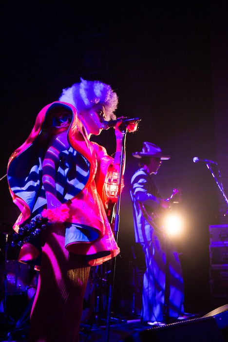 「最高のクリスマスにしていきます!」という中納の言葉から届けられたのは新曲「Arab no Yuki」。森が奏でるリズミカルなギターリフが印象的なエキゾ風味のアップチューンだ。「Room #1102」に続けて演奏されたのは、アメリカの男女バンドThe J's With Jamieが1960年代に発表した楽曲「Yoshiko」のカバー。謎のカタコト日本語詞が強力なインパクトを残すモンドでキッチュなガレージロックにフロアは大きな盛り上がりを見せた。