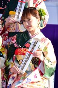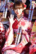 自作の振袖を着て登場し、注目を集めたのは外薗葉月(HKT48チームTII)。1年前から自作の振袖で成人式に出ようと考えていたという彼女が「(製作期間は)夏から作っていたので半年くらい。費用は3000円くらいで……お恥ずかしいんですけど」とコメントすると、メンバー間に「すごい!」という声が飛び交った。記者から毎年恒例の「今年の新成人は何世代?」という質問が飛ぶと、荻野はメンバーを代表して「今年の私たちは“平成の大トリ世代です! 私たちの代で平成の成人式はこれで最後ということで、名付けさせていただきました」と宣言。最後に彼女は今年の選抜総選挙の目標順位を尋ねられると、「総選挙はもちろん次もあったら参加させていただこうという気持ちはあって、もちろん去年よりランクアップを目指したいと思うんですけど……いけるんだったら上へいきたいです。でもまだ(1位と)言える勇気がなくて……でも私も一生懸命がんばって、できるならナンバー1を目指したいです」と謙虚に語った。