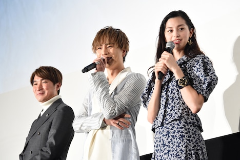 「平成のうちにやっておきたいことは?」とMCから尋ねられた登坂は「スカイダイビング」と回答。客席から沸き起こった期待の拍手を受け、「ヒットするならそのくらいやります」と宣言した登坂は、同じく「スカイダイビング」と答えた中条と橋本監督を「じゃあ3人で飛びましょうか。手をつないで飛ぶやつ」と巻き込んで会場の笑いを誘った。
