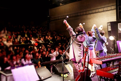 中盤の「てぃーけーじー」では雅功の「みんなで“てぃーけーじダンス”を踊りましょう」という呼びかけで、オーディエンスがT・K・Gを体で表現するダンスを踊る一幕も。そして雅功が「せっかく踊ったので、さらに僕らが作った“しめじ体操”をやりたいと思います!」と話し、2人が「しめじ体操」を踊って会場を爆笑に導いていた。ライブ後半ではバンドスタイルで「スタートダッシュ」「菌カツ!」といった楽曲を披露。「ひだりむね」ではバレンタイン翌日のライブにちなみ、フロアに2人がチョコレートを投げ入れていた。