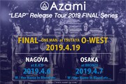 このツアーはAzamiが1月に発売した最新作「LEAP」を携えて行っているもの。このたび「"LEAP" Release Tour 2019 FINAL Series」と銘打ったファイナルシリーズとして、4月6日の愛知・栄R.A.D公演.、4月7日の大阪・LIVE HOUSE OSAKA BRONZE公演、4月19日の東京・TSUTAYA O-WEST公演の東名阪3公演が追加された。愛知、大阪公演は