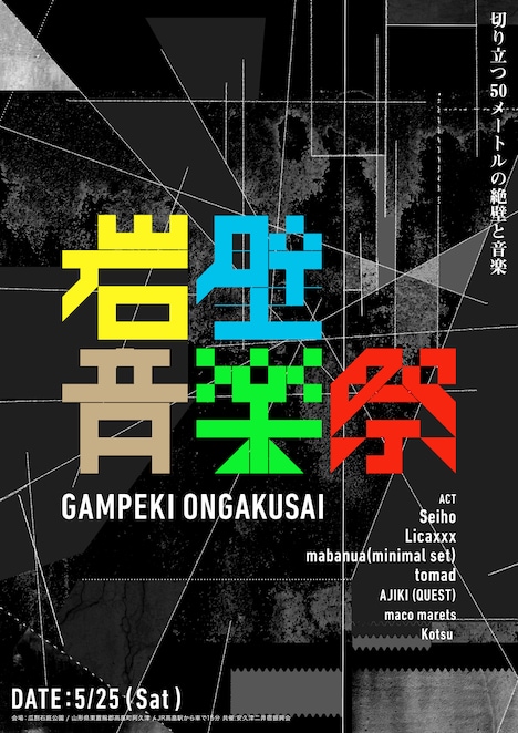 5月25日に山形・瓜割石庭公園にて野外音楽フェス「岩壁音楽祭」が開催されることが決定した。