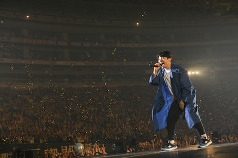 そんな思いが詰まった「アイデア」では、弾き語り部分になると星野が1人センターステージへと移動。弾き語り部分を歌い終えたあとは、セグウェイでメインステージに戻って行き、再び歌い始めると銀テープがステージから発射された。続く「Week End」では星野が花道を歩いてシンガロングを煽り、イヤモニを外して観客たちの声を聞きながらうれしそうに踊る。星野流のアンコールの説明がされたあと、本編ラストナンバーとして届けられたのは「Family Song」。温かな歌声を届けた星野は深くお辞儀をして、ステージを下りた。