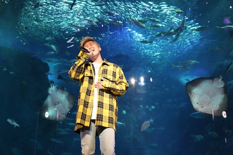 これは、4月3日に彼の1stソロアルバム「この道の先に」がリリースされたことを記念して実施されたもの。釣りを愛する彼のため、同水族館内で最大規模の水槽「相模湾大水槽」の前に特設ステージが設置され、大野はファンと約2万匹の魚の前でその歌声を披露した。