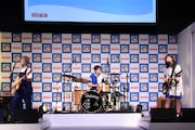 続いて緊張の面持ちで舞台に登場したのはSHISHAMO。宮崎朝子(G, Vo)、松岡彩(B)、吉川美冴貴(Dr)が持ち場に着くとCMソング「OH!」を生披露し、サビではタンバリンを手にした広瀬も加わり演奏を盛り上げた。パフォーマンスを終えたSHISHAMOの宮崎は「世の中がスマートに効率よくなっている中、汗をかいて暑苦しくがんばるのもカッコいいんじゃないかと思い、“暑苦しい”をテーマに作りました」と楽曲に込めた思いを明かした。