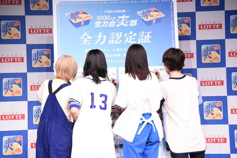 発表会の最後には、CM撮影に参加した男子部員、女子部員の代表も登場。彼らに向けてSHISHAMO、広瀬は直筆メッセージ入りの「全力認定証」を贈呈した。そして広瀬が「集まった部員にエネルギーをもらいながら、素敵なCMが完成したと思います」とCMをアピールし、イベントを締めくくった。