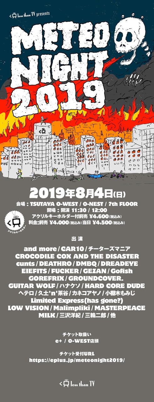 8月4日に東京・渋谷の3会場で行われるLess Than TV主催ライブイベント「METEO NIGHT 2019」の出演アーティスト第1弾が発表された。