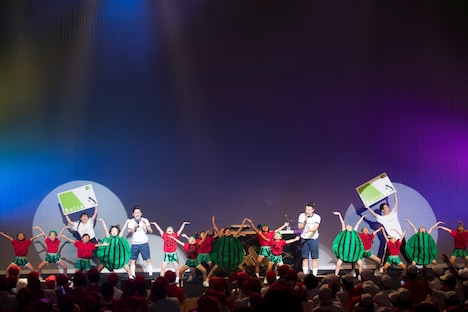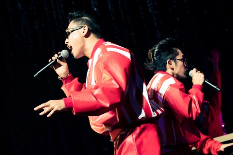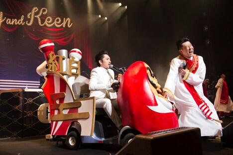 大歓声の中ステージを覆う幕が開くと、赤と白の衣装に身を包んだC&Kが登場。バックダンサーを引き連れ、2人はファンキーなナンバー「C&K X」で華やかにライブをスタートさせた。その勢いを加速させるようにC&Kはダンスチューン「to di Bone」を投下。オーディエンスは彼らの合図で左右前後に体を揺らしたり、コール&レスポンスを交わしたりと、前のめりの姿勢でライブを楽しんだ。さらに「milky way」「ジャパンパン~日本全国地元化計画~」といったナンバーで場内の高揚感は留まることなく上昇していく。「MATSURI」では大きな新生姜の神輿がステージ袖から登場。オーディエンスは堰を切ったように激しく踊り、場内に熱狂が広がった。