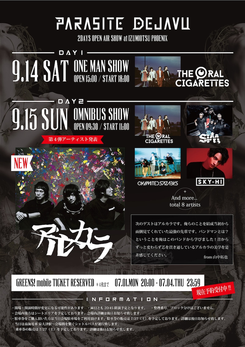 THE ORAL CIGARETTES主催「PARASITE DEJAVU」にアルカラ(コメントあり)