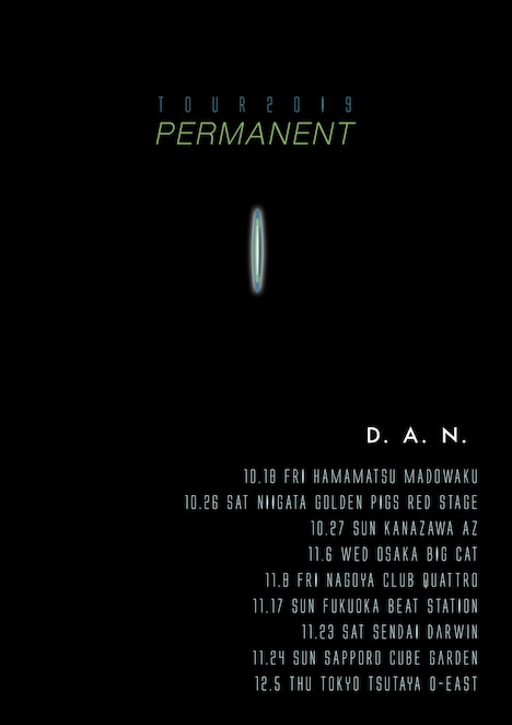 このツアーは10月18日の静岡・LiveHouse 浜松 窓枠を皮切りに、12月5日の東京・TSUTAYA O-EASTまで全9公演が行われる。D.A.N.は6月の東名阪ツアー「D.A.N. TOUR 2019 "BEND"」と同様にサポートメンバー2名を迎えた5人編成でのパフォーマンスを披露する。