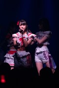 満員のフロアが虹色のペンライトで埋め尽くされる中、12人のフルメンバーでステージに登場した虹コンは、結成当初から歌い続けてきた「女の子むてき宣言!」で元気いっぱいにライブをスタートさせる。続けて「戦場の聖バレンタイン」で熱狂的なMIXを巻き起こすと、そこから「THE☆有頂天サマー!!」「ずっとサマーで恋してる」「限りなく冒険に近いサマー」とサマーチューンを3連発。ライブは冒頭から異様な盛り上がりを見せた。5曲を終えたところでメンバー1人ずつ自己紹介を行い、リーダー的場華鈴はこの日初めてイヤーモニタを装着してのライブに挑んでいることを報告。ファンのコールとの一体感を重んじる虹コンにとって外部の音をシャットダウンするイヤモニを使用するのは大きな決断だが、鶴見萌は「めっちゃ聞こえるよ! 皆さんの声が届くように、皆さん用のマイクが置いてあるんですよ」と、会場内に設置したマイクの音がイヤモニに届くよう設定していることを明かした。