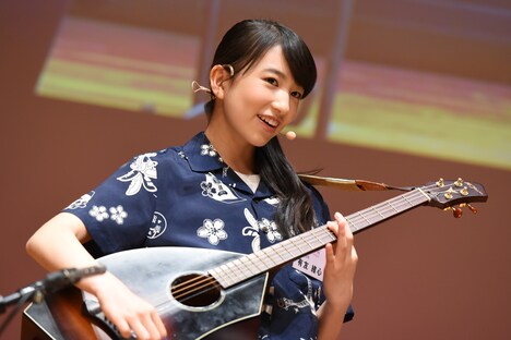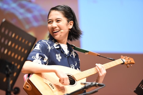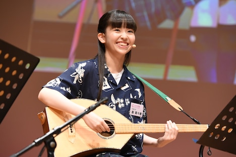 課題曲は2015年にヒットした「海の声」で、1時限目と同じように生徒たちは一五一会譜をもとに運指を覚えていく。趣味としてギターを挙げている森萌々穂はあっという間に運指を覚え、佐藤と野崎も徐々に一五一会の弾き方を習得。藤平はなかなかコードをきれいに鳴らせなかったが、熱心に練習をして演奏を形にし、本番では4人全員で「海の声」を弾き語った。授業を終えた森萌々穂は「ギターをしばらくやっていなかったけど、一五一会をやってみて再開しようかなと思いました」とコメント。藤平は「私は楽器音痴で、学校でも担当はタンバリンなんです。でも今回、一五一ができてよかったし、“一”以外の音もきれいに出せるようになって、いつかは特技になれば」と意気込んだ。