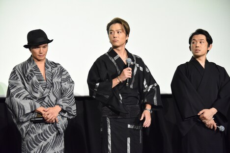 坂東は男性キャスト陣との撮影がなかったそうで「お話を聞いていて皆さんと一緒に撮影したかったなと思いました」とうらやましそうにコメント。そして「スタイリストさんがしゃがむときの所作を教えてくださったり、なかなか普段の撮影では気を使わないところも気を使わなくちゃいけなかったりして難しかったですけど、いつも女子ばっかりのE-girlsにいるので、女の子1人ということでスタッフさんにもすごく親切にしていただいてありがたかったです」と撮影を振り返った。その後はスキあらば“大人のセクシーなジョーク”を挟む高嶋をTAKAHIROが制しながらイベントは進み、終盤では本編を早回しで約90秒に編集した特別映像「ホンモノだ~れだ」が解禁された。監督のアイデアで制作されたこの映像は、明日8月21日より3日間限定で「3人の信長」のオフィシャルサイトでも公開される。