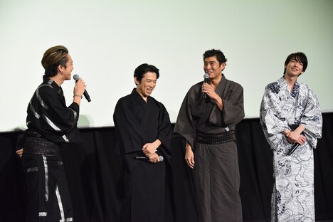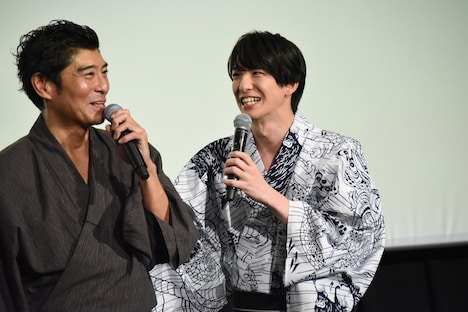 高嶋は本作について「いまだかつてない作品です。『影武者がいる』というセリフはあるんですけど、その影武者が3人も出るというのは観たことがない。この3人の息がぴったりで素晴らしかったです。笑えるけど、本格時代劇。皆さん、今日は興奮して夜寝られないと思います」と熱く語る。するとTAKAHIROは「高嶋さんが言うとどうしても……さっきも『ドキドキ通り越してムラムラする』って言ってましたし」と、下ネタ発言に定評のある高嶋のコメントに笑う。それを受けて高嶋が「(撮影時も)大人のセクシーなジョークに3人が笑ってくれてうれしかった」と話すと、TAKAHIROは「高嶋さん、1人でムラムラされたと思いますけど、僕らは3人でヒヤヒヤしてますから(笑)。高嶋さんは見たことがないくらいのジェントルマンなんですけど淡々と下ネタをおっしゃるので……」とタジタジの様子。高嶋はTAKAHIROの“下ネタ”発言を「大人のセクシーなジョークね!」と訂正し、TAKAHIROは「表現を間違えました(笑)」と頭を垂れた。