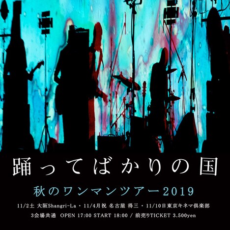 毎年秋にワンマンツアーを行っている踊ってばかりの国。このツアーは11月2日に大阪・Shangri-La、4日に愛知・Tokuzo、10日に東京・東京キネマ倶楽部の3会場で実施される。彼らのオフィシャルサイトでは明日8月24日12:00から9月1日23:00まで、チケットの先行予約を受け付けている。