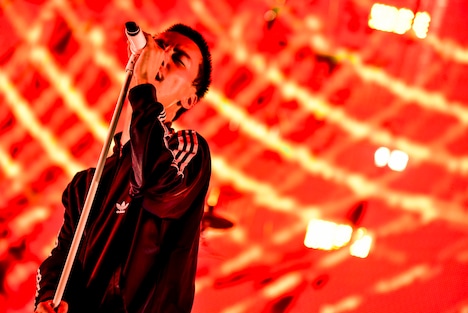 HSU(B)が奏でるダンサブルなビートが曲を支える「WIPER」を経て、YONCEは「来てくれてありがとう。パンパンじゃん! すでにめちゃくちゃ楽しいです」と客席を見渡す。その思いはほかのメンバーも同じようで、「Alright」の演奏中には弾けんばかりの笑顔でプレイする姿がスクリーンに映し出された。その後も、TAIKING(G)が弾くキレのあるリフが炸裂した「DUMBO」や、YONCEが歌詞の一節を「終電で繰り出して関内で待って」に変えて歌い会場を沸かせた「Miree」など懐かしいナンバーが続いた序盤戦。ハイライトとなったのは、YONCEの「Turn on the radio!」の言葉とKCEE(DJ)のスクラッチを合図に始まった「STAY TUNE」だった。幾度となくライブで披露してきたキラーチューンを、6人は丁寧な演奏と共にスタジアムに響かせ、心地よいグルーヴでオーディエンスを飲み込んだ。