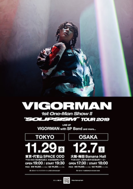 MVの公開と併せて、VIGORMANは初の単独公演「SOLIPSISM TOUR 2019」を11月29日に東京・SPACE ODD、12月7日に大阪・BananaHallで開催することを発表。イープラスでは明日10月1日19:00からスペシャルプライスのチケットの先行予約を受け付ける。