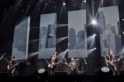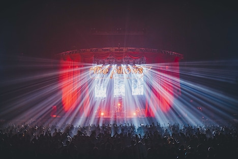 開演時間を回って会場が暗転すると、ステージの両サイドに設置されたLEDモニタに、メンバー3人の幼少期から少年時代、学生時代、そしてthe pillows結成後までの写真が年代順に映し出され、それぞれの母親たちが息子の思い出を語るインタビューが流れた。母親たちはいずれも、the pillowsが30年続いた理由を「ファンあってのこと」と感慨深げに答える。映像が終わるのと同時に「聴こえてくるのはキミの声 それ以外はいらなくなってた」という山中さわお(Vo, G)のアカペラが響き渡り、ステージを囲っていた赤い緞帳がゆっくりとオープン。母親たちからのメッセージ映像で感傷的なムードになった客席に向けて、彼らは激情をぶつけるように「この世の果てまで」を演奏した。