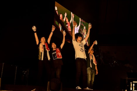 すると観客はBGMに合わせて「Thank you, my twilight」を歌い始め、まもなく会場内が大合唱に。曲が終わっても鳴り止まない拍手に呼び戻されて、メンバーが三度ステージに戻った。彼らは缶ビールで乾杯しながら「Swanky Street」でのミスを振り返り、「あんなに練習したのにね。やっぱ俺たちポンコツだわ。大学生バンドだよ」と笑い合う。なごやかな雰囲気の中でダブルアンコールとして披露されたのは、こちらもthe pillowsの代表曲である「Ride on shooting star」「Funny Bunny」の2曲。「Funny Bunny」ではサビの部分で山中がマイクから離れて観客を煽り、会場には満員のオーディエンスによる合唱が響き渡った。そしてこの曲のラストで山中は、「好きな場所へ行こう キミならそれが出来る」という歌詞を「僕らはそれができる」と替えて歌った。