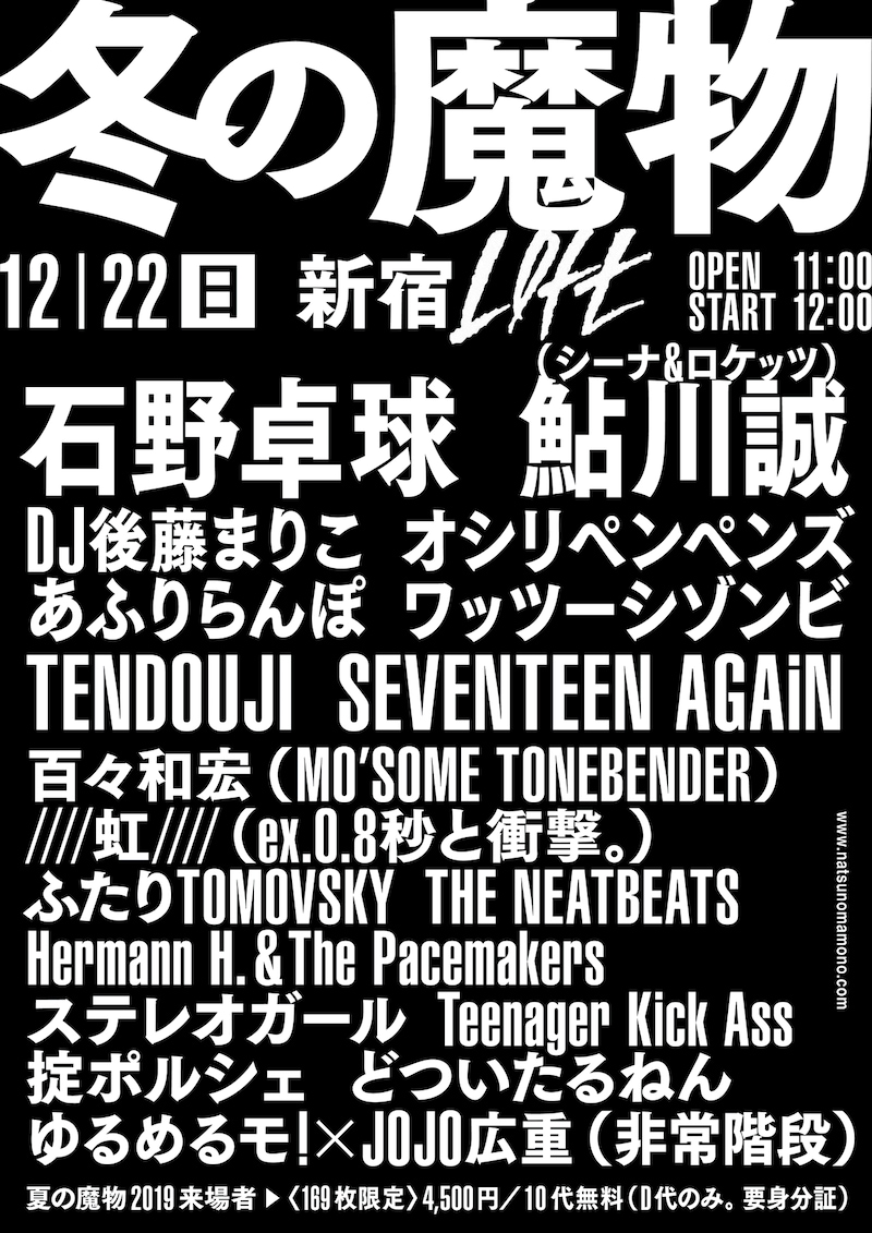 「冬の魔物」出演者第2弾でTENDOUJI、SEVENTEEN AGAiN追加 - 音楽ナタリー https://t.co/PulvYRvDMc