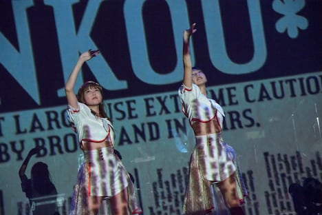 続いて転校少女*はテレビアニメ「GO!GO!アトム」のエンディングテーマ「終わらない世界」でファンと元気よくジャンプしたかと思えば、ジャジーなナンバー「Catch Me(If You Can)」で大人っぽい一面を見せる。塩川莉世と松井さやかによるユニット曲「PAINT GIRL」では岡田がバンクシーをオマージュして描いた本公演のロゴ、岡田と寺田葵による「さかさまの世界」では「不思議の国のアリス」をモチーフにした映像が映し出され、観客を楽曲の世界観に引き込んだ。