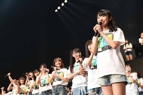 ライブは「君と虹と太陽と」で幕を開け、昨年から加入年をさかのぼる形でメンバーが次々に登場。今年4月に卒業予定の1期生・峯岸みなみを最後に迎え入れた彼女たちは、「ファースト・ラビット」「Teacher Teacher」「法定速度と優越感」とアップテンポの楽曲を立て続けに披露した。その後はチームAの「Overtake」を皮切りに、チームK「細雪リグレット」、チームB「恋をすると馬鹿を見る」、チーム4「今、Happy」、チーム8「47の素敵な街へ」と、各チームの個性あふれるパフォーマンスに会場が盛り上がる。ユニットごとのパートには昨年12月に行われた「AKB48劇場14周年特別記念公演」で結成された新ユニットを含む10組が登場。同公演でエアバンドを披露した向井地美音(Vo, G)、齋藤陽菜(G)、高岡薫(Violin)、高橋彩音(Key)、吉橋柚花(Dr)、行天優莉奈(B)の6人は今回生演奏でパフォーマンスし、本当に楽器を演奏できることを証明してみせた。