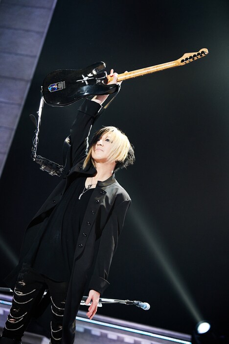 幕間には容疑者Aと刑事Aが共謀し、TERU扮する容疑者AとTAKURO扮する容疑者Cを毒殺する映像が流れ、刑事Aが容疑者Aに“黒い札束“を渡すシーンから、HISASHIとJIROがリードボーカルをとる「BLACK MONEY」へ。HISASHIは軍服風の衣装、JIROはノースリーブの黒いパーカーを着用し、火花を散らすように激しくパフォーマンス。火柱が上がる中でサビで2人が声をそろえシャウトを繰り返すと、オーディエンスは大いに熱狂した。2人が退場すると今度はハジメタルが弾く柔らかな旋律に乗せて、TERUが「LET ME BE」をしっとりと歌唱。途中からTAKUROがアコースティックギターをつま弾き、切々としたラブソングを美しく彩った。「LET ME BE」の流れを継ぐように披露された「逢いたい気持ち」では、TERUの穏やかな歌声がオーディエンスを優しく包み込んだ。