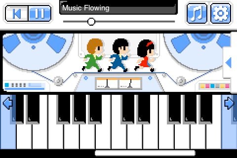 「YMCK Player」は、画面をタッチすることで、誰でも簡単にファミコンサウンドによるキーボードプレイが楽しめるほか、iPodライブラリから好みの楽曲を再生しながら演奏ができる、マルチプレイヤー型楽器系アプリ。通常版アプリに加え、書き下ろし曲「Music Flowing」を同梱した特別バージョンも同時発売されている。価格は通常版が230円、楽曲同梱版が350円。