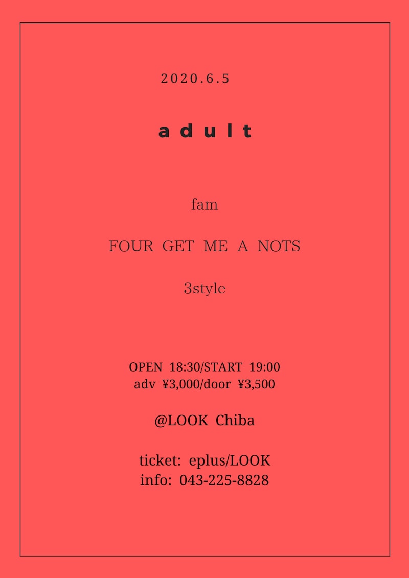「adult」はサウンドエンジニアの村瀬大貴氏が主催するスリーマンライブで、3styleは村瀬氏の招集により約5年ぶりにライブイベントに出演。この日は