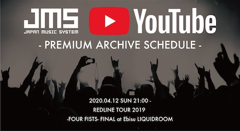 ジャパンミュージックシステム主催のライブツアー「REDLINE TOUR 2019~FOUR FISTS~」の昨年6月に東京・LIQUIDROOMで行われた最終公演の映像が4月12日(日)21:00よりYouTubeでプレミア公開される。