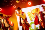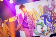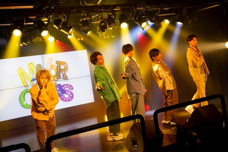 CUBERSがステージに立つのは3月発売のシングル「WOW」リリースイベント以来、およそ3カ月半ぶり。5人が姿を現し、TAKAが「一緒に楽しんでいきましょう!」と呼びかけると、彼らのメジャーデビュー曲「メジャーボーイ」のイントロが鳴り始める。会場に観客はいなくても5人は「踊れ!」「騒げ!」とカメラに向けて呼びかけ、視聴者を盛り上げていく。「YouTubeをご覧の皆さん、CUBERSです!」と快活に挨拶をした彼らは、ひさびさのライブとあってテンション高めのトークを展開。無観客でも全力のパフォーマンスで楽曲を届ける彼らは汗を拭きながらお互いの近況などを語り合い、いつものライブと同じく春斗をイジり倒すMCで視聴者を笑わせていた。トーク中にステージをはけていた末吉9太郎が「食費は抑えろ 推しに積め」という格言が書かれたTシャツ姿で再登場すると、彼のソロコーナーへ。“よしえ”というアイドルオタクのキャラクターでバズった末吉はソロ曲「顔面国宝!それなー」を歌唱。ステージ上で「それなー」と発すれば、YouTubeのコメント欄にも「それなー」というコメントが大量に書き込まれ、チャット欄は大盛り上がりとなった。