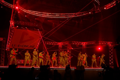 武知海青をセンターにパフォーマーたちはストンプを披露し、それぞれソロやペアでダンススキルを見せつける。龍によるMPCパフォーマンス、浦川翔平によるDJプレイを経て始まったのは、LIKIYA、神谷健太、山本彰吾、浦川、鈴木昂秀からなるヒップホップユニット・MA55IVE THE RAMPAGEによるステージ。赤いジャケットを羽織った5人はマイクを手に新曲「No.1」を披露し、コメント欄を大いに沸かせた。