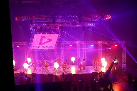 オープニング映像が明け、会場と中継がつながるとステージには黒装束に身を包んだ16人が鎮座。フードを外しながらもう1つのステージへと歩みを進め、最後に大旗を持った陣が到着するとTHE RAMPAGEは川村壱馬の「『LIVE×ONLINE』楽しんでいきましょう!」という声を合図に、映画「HiGH&LOW THE WORST」の劇中歌「SWAG & PRIDE」でライブをスタートさせた。レーザー光線が飛び交う中16人は「HARD HIT」「FIRED UP」とTHE RAMPAGEらしいエネルギッシュなナンバーを連射。さらにキラーアンセム「Fandango」を投下すると、コメント欄は「ファンダンゴ!」という掛け声で埋め尽くされる。「LA FIESTA」では所狭しと駆け回り歌い踊るメンバーの姿をMoVIカメラが追いかけ、16人のアグレッシブな姿が視聴者に届けられた。